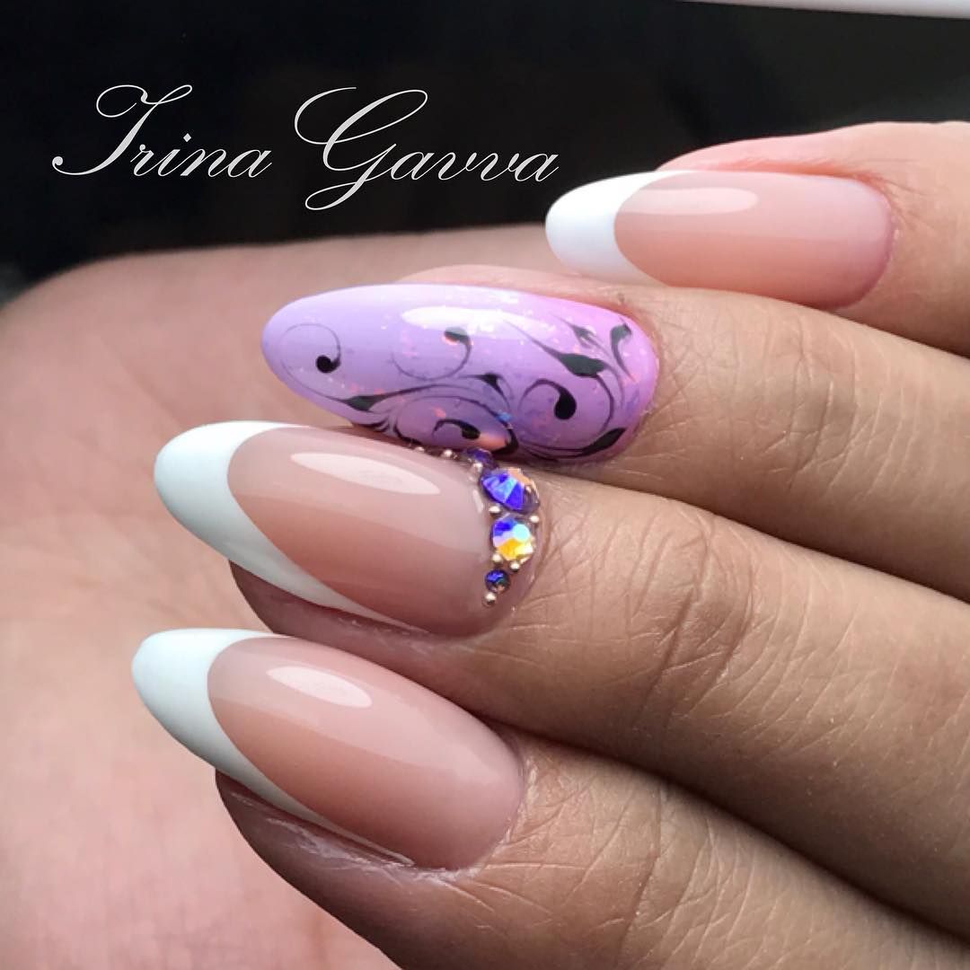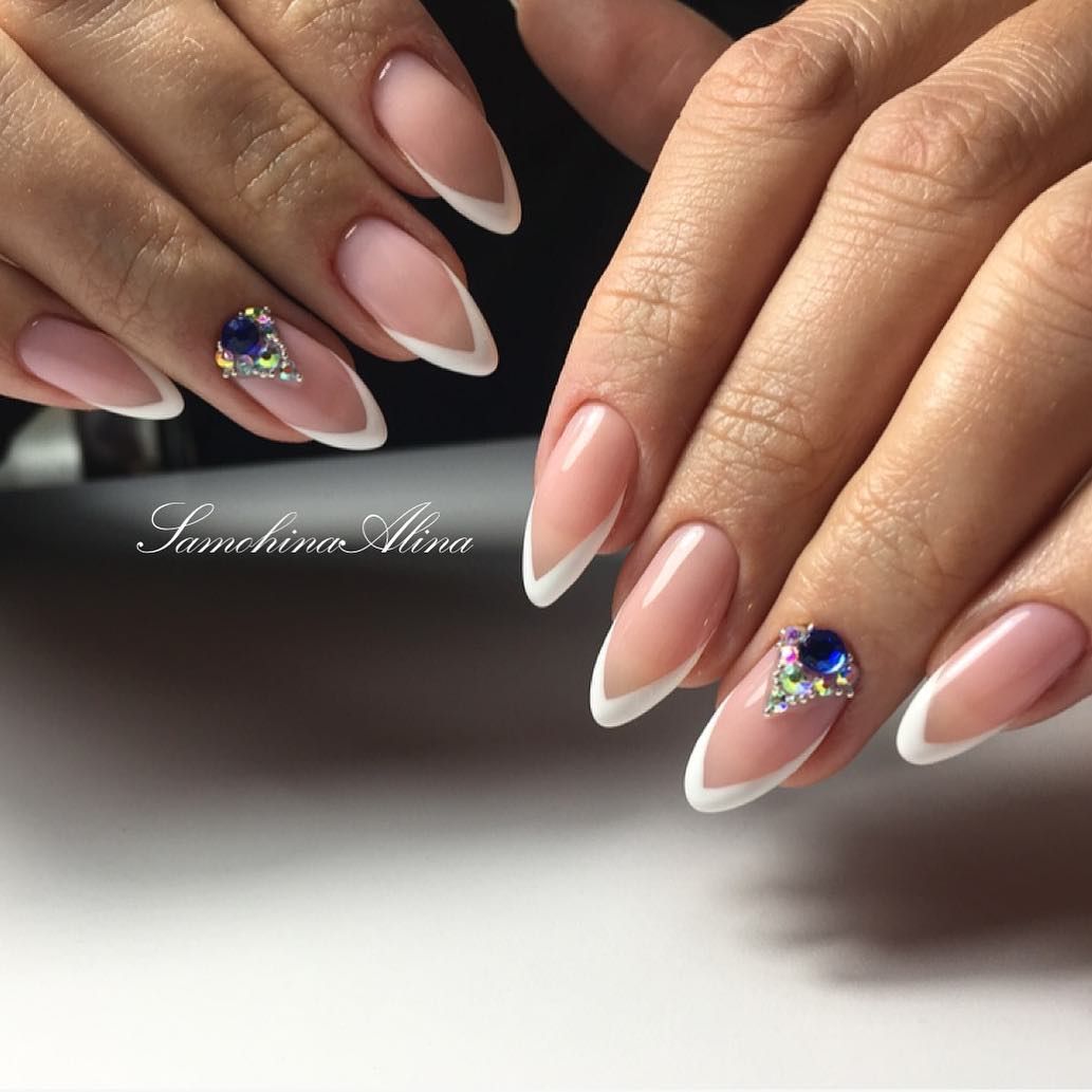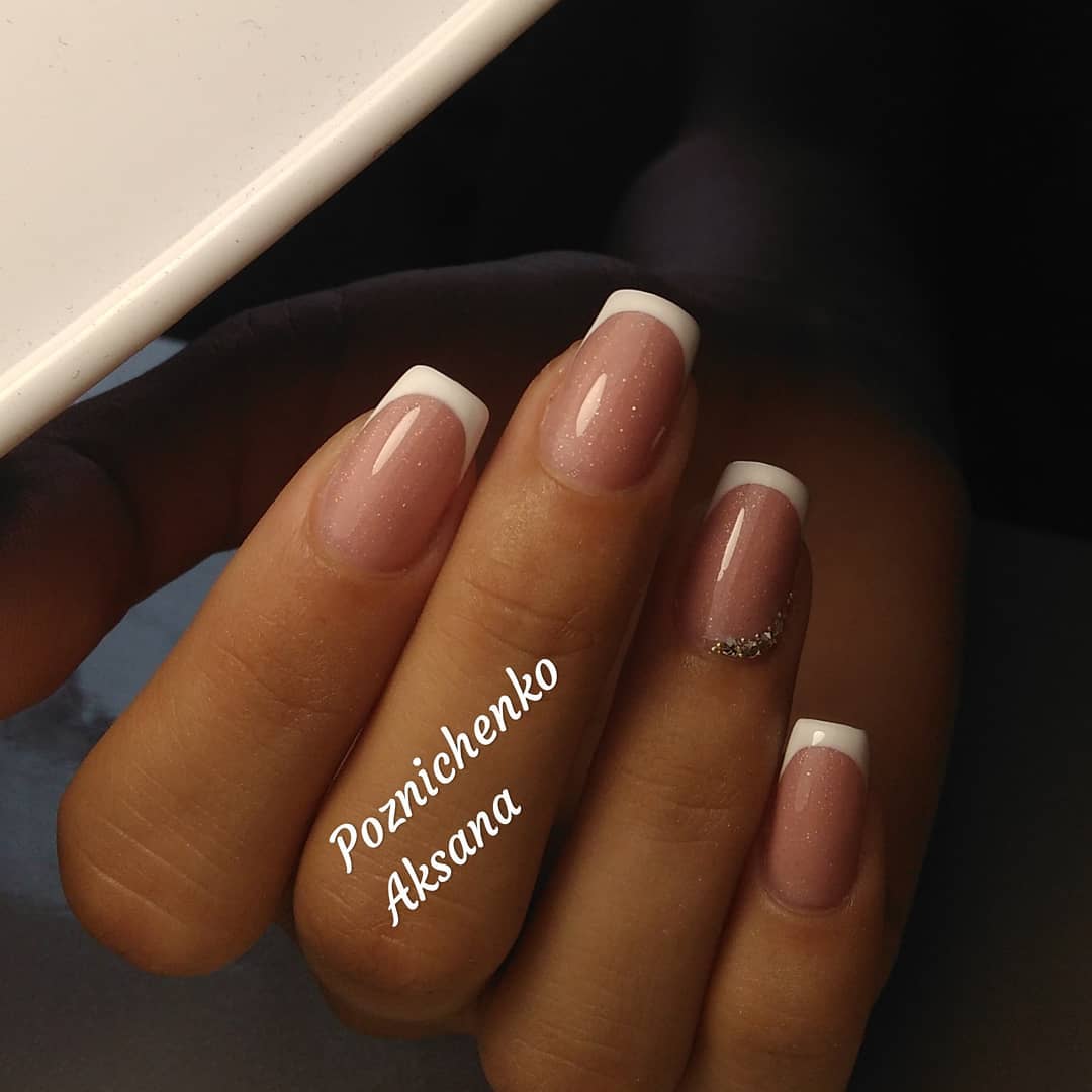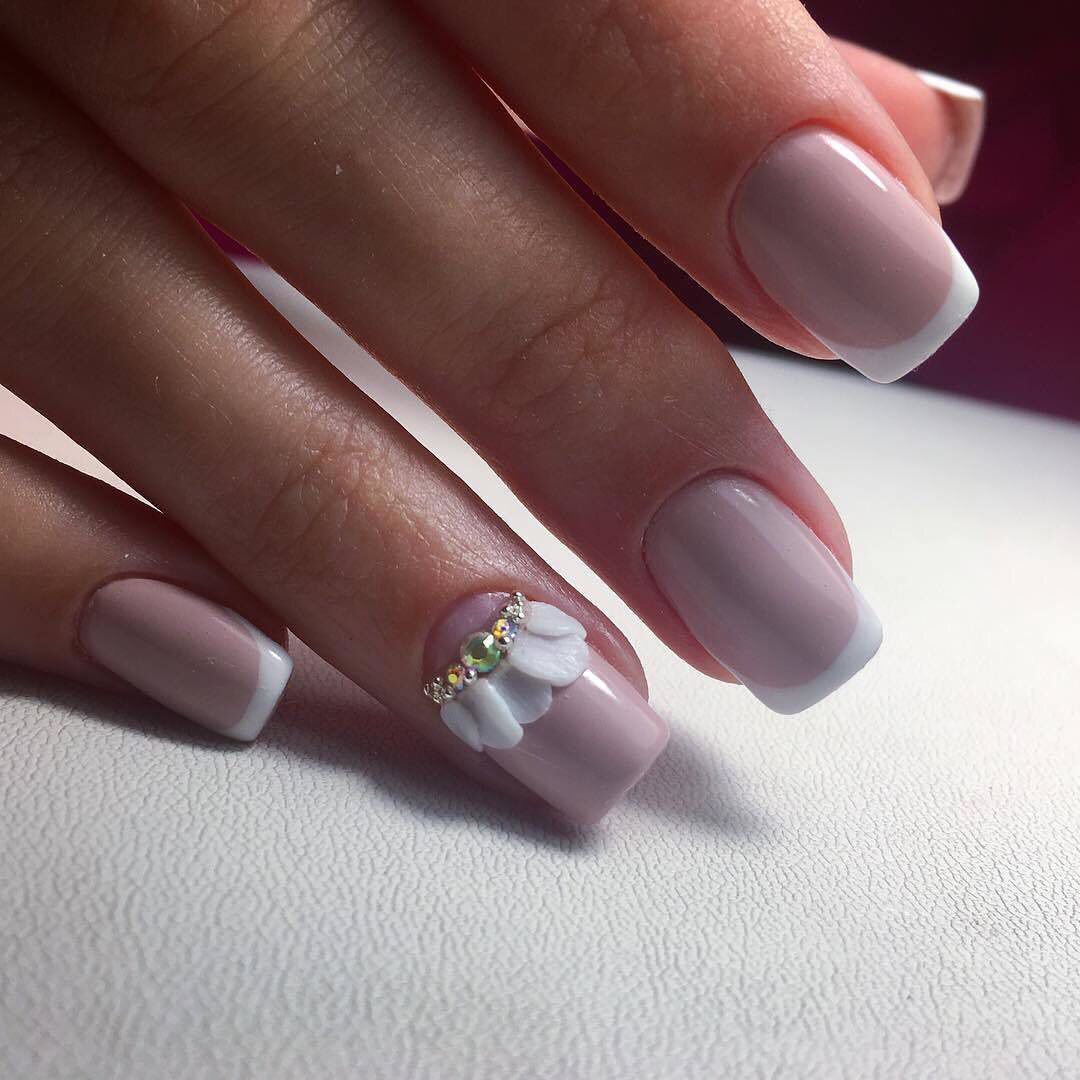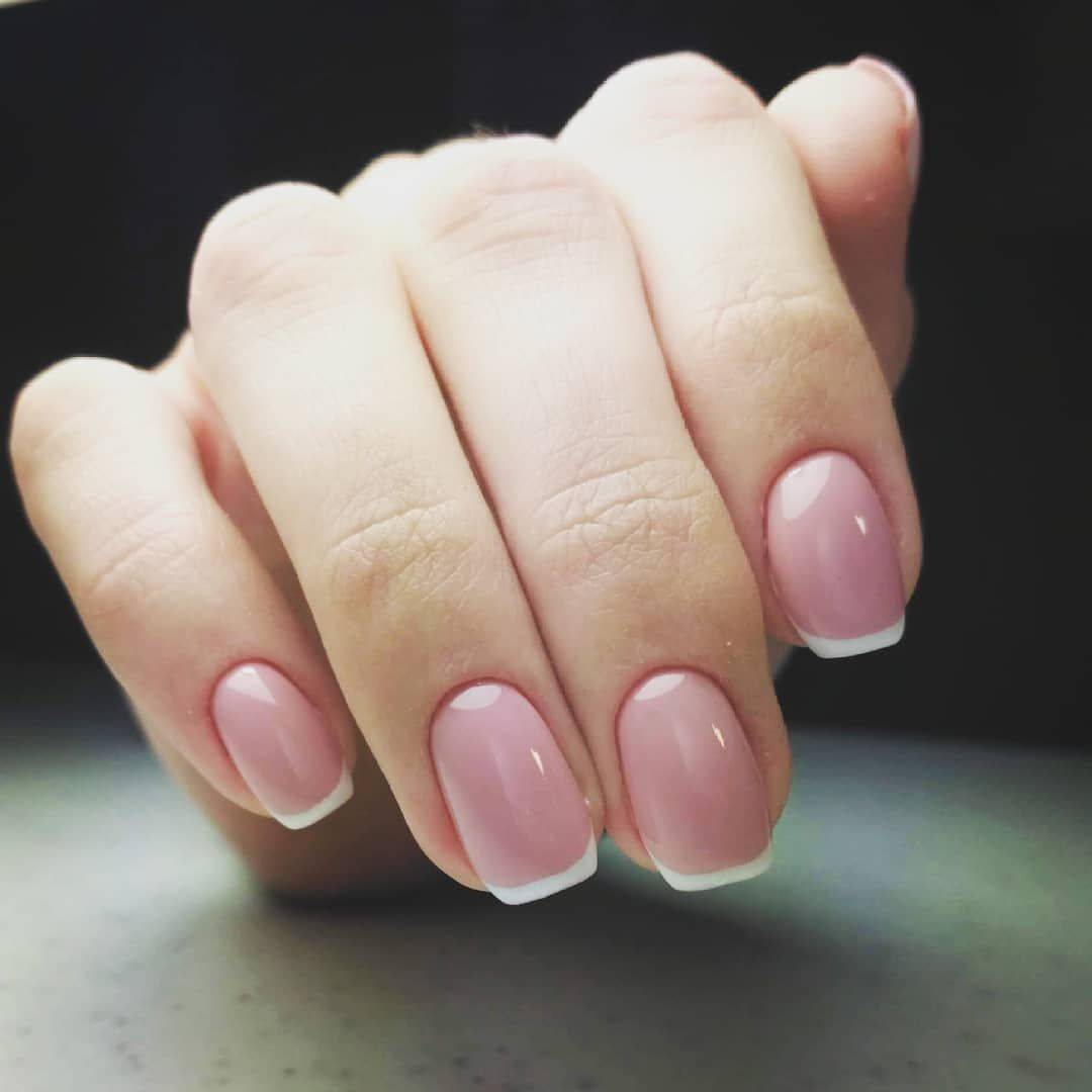 Френч на нюдовой базе смотрится немного мягче и нежнее классического дизайна.