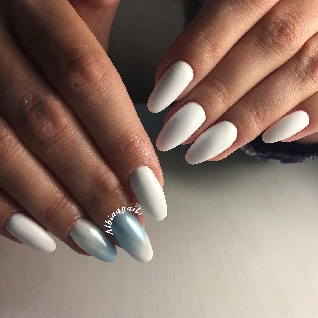 Дизайн ногтей с молочной базой отлично подходит для применения втирки с жемчужным и зеркальным эффектом. Покрытие создаёт фантастический эффект, но легко царапается и быстро теряет вид.