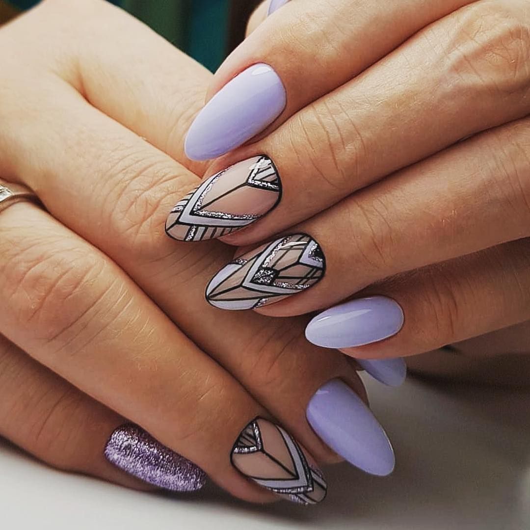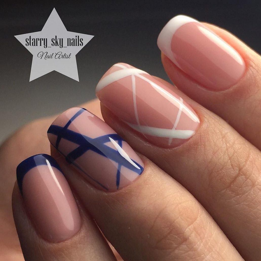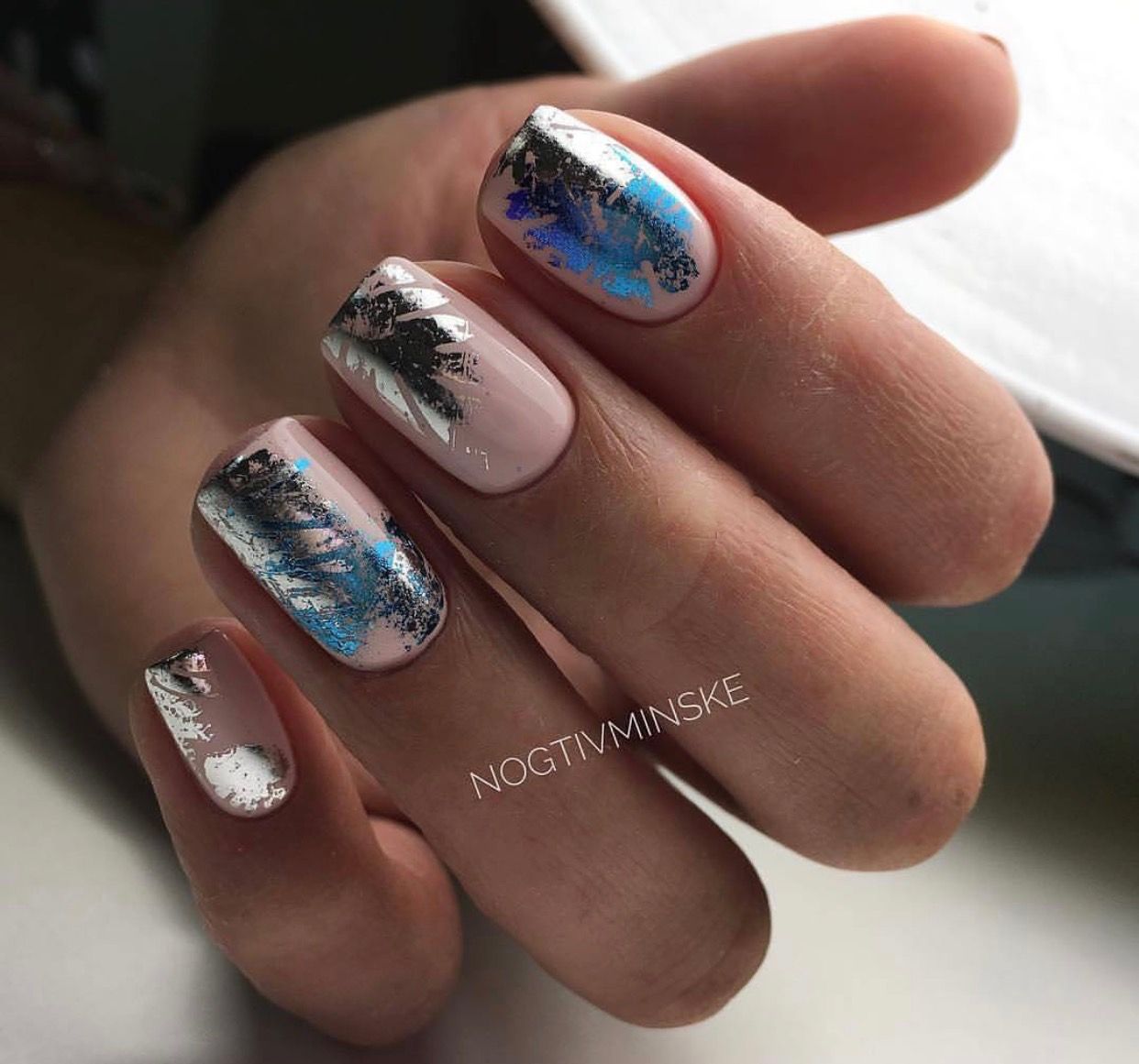Абстракция с намеком на зимнее настроение, созданная с помощью геометрических техник дизайна и омбре, является горячей тенденцией.