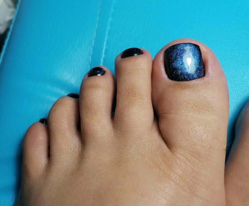 Загадочные переливы этого магнитного лака — одно из лучших решений для новогоднего педикюра. Носить его можно как в праздники, так и будни. Выбирайте оттенок, который подходит вашему образу. Дополнительного декора, как правило, такой вариант не требует
