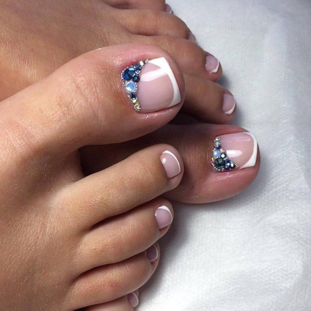 Стильный педикюр 2024 со стразами