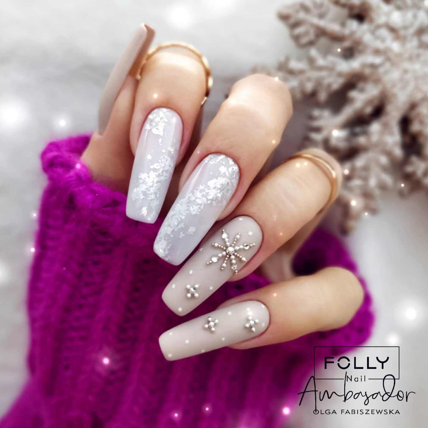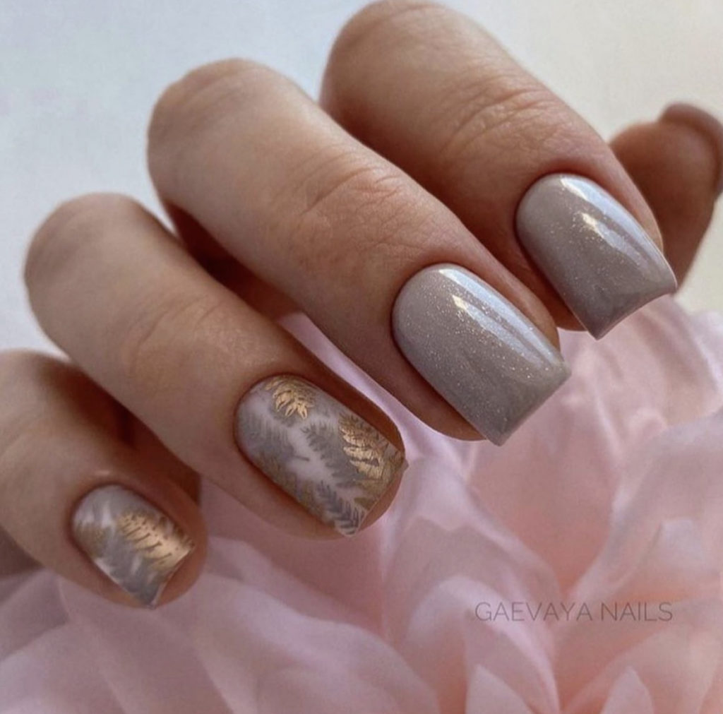 Легкая и стильная классика в новом прочтении. Маникюр в оттенках белого золота уместен и зимой, и летом. Он отлично дополнит собой ювелирные украшения, подчеркнет изящную форму ногтей «балеринка» или миндалевидную. Белое золото можно сочетать с черным и серебристым лаком.