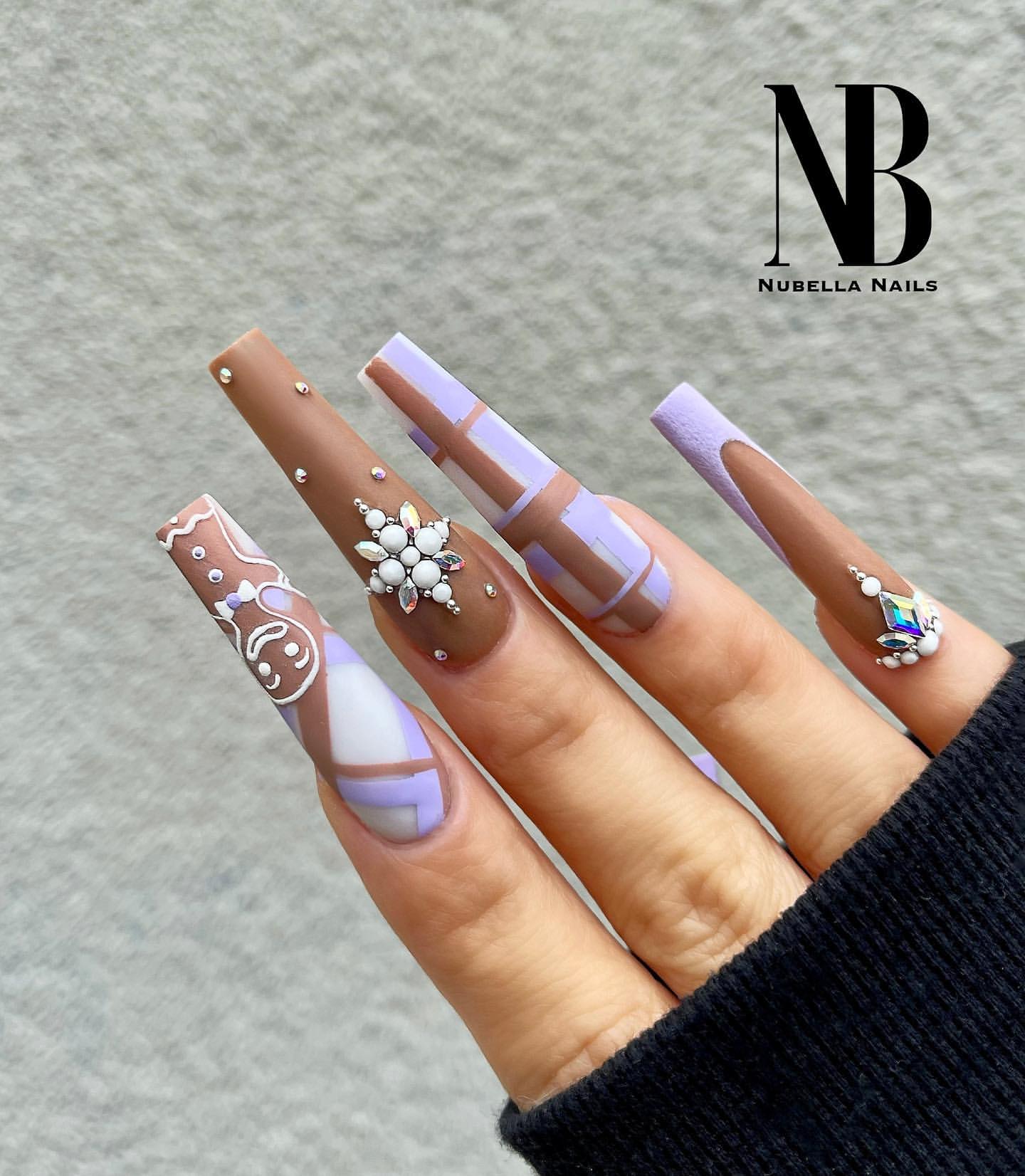 Цвет лаванды подходит практически любому образу и может украсить длинные пластины молодых девушек и взрослых женщин.