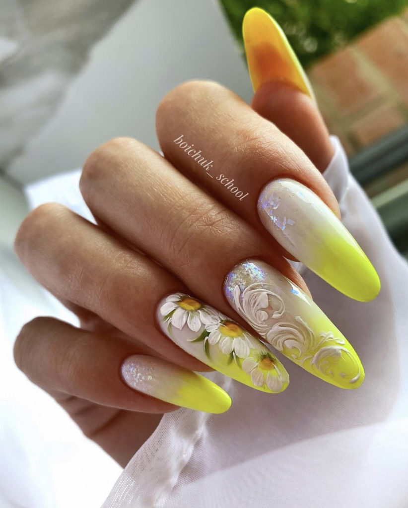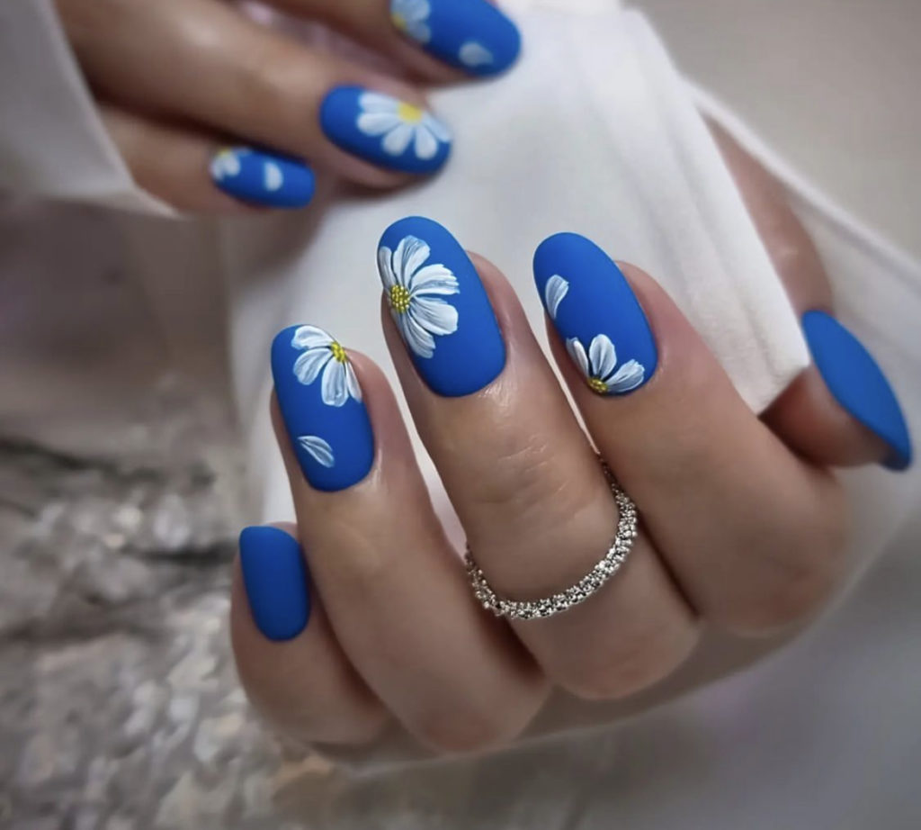 В этом сезоне цветы, особенно маргаритки, заполонили ваш маникюр. Несомненно, такой способ росписи ногтей очень свежий и веселый. Эти цветы — хорошее начало для того, чтобы начать получать удовольствие от росписи ногтей.