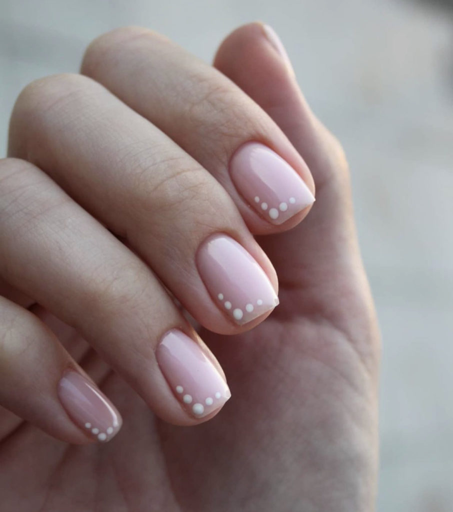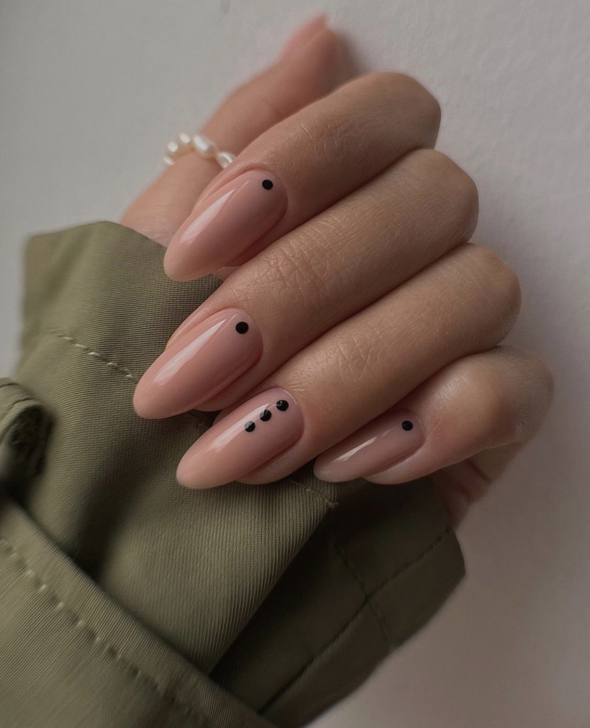 Этот дизайн был самым востребованным в салонах по всему миру в течение нескольких месяцев. Их называют «точечными ногтями». Это гладкая, одноцветная основа, обычно пастельных тонов, с микроточками, расположенными близко к эпидермису.