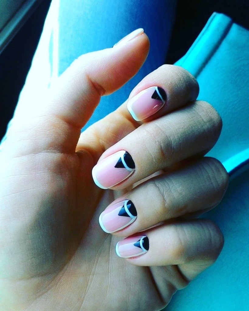 Техника создания френча с треугольником описана выше. Вам остается только выбрать подходящие оттенки и декор. Френч с треугольником практически не нуждается в дополнительном дизайне. Напомним, это одна из разновидностей минималистического дизайна, поэтому не стоит нагромождать его объемным декором.