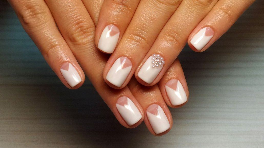 Легкая геометрия в кипенно-белом цвете – превосходная идея для свадебного нейл-дизайна.