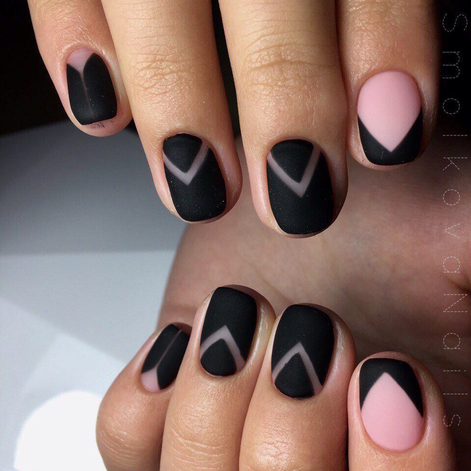Роскошный черный маникюр изысканно обыгрывает мейнстримовую тему негативного пространства.