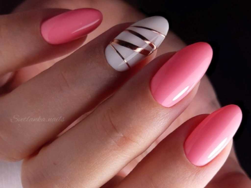 Этот цвет – воплощение любви, красоты, нежности. Для получения оригинального маникюра можно использовать как яркие, так и более сдержанные тона. Розовый сочетается с белым. На таком фоне изображают композиции в стиле «Минимализм».