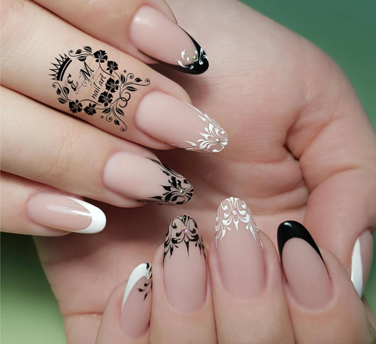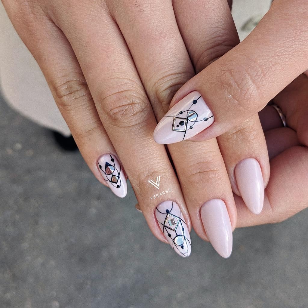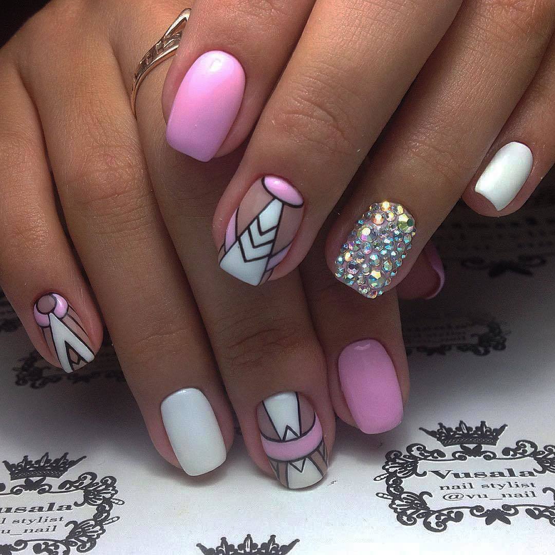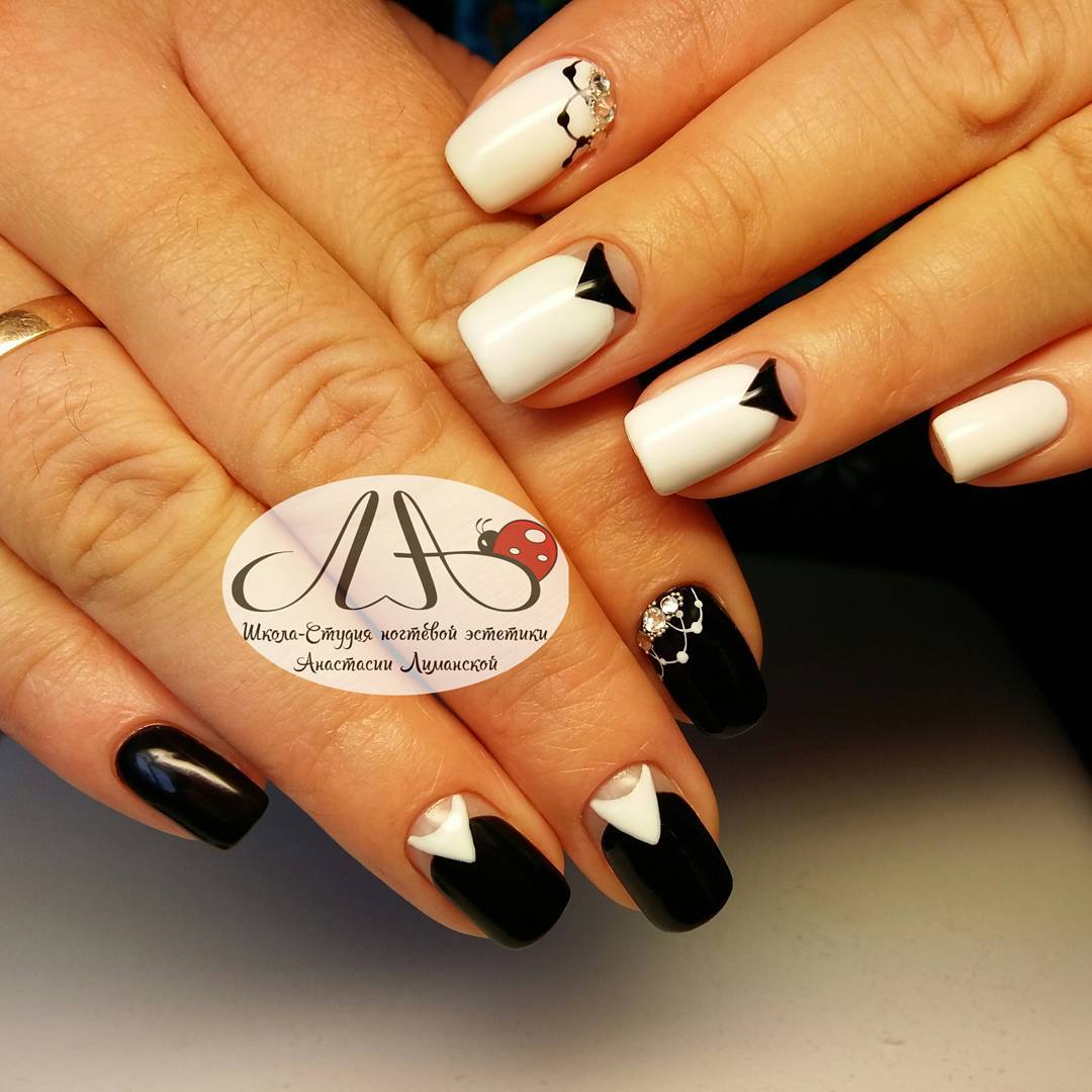 Сами рисунки рекомендовано выполнять в чёрных или же белых тонах. Основным покрытием лучше всё же сделать пастельные оттенки. Для торжественных моментов можно украсить ноготки стразами, чтобы придать им гламурности.