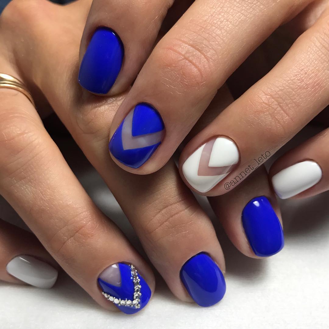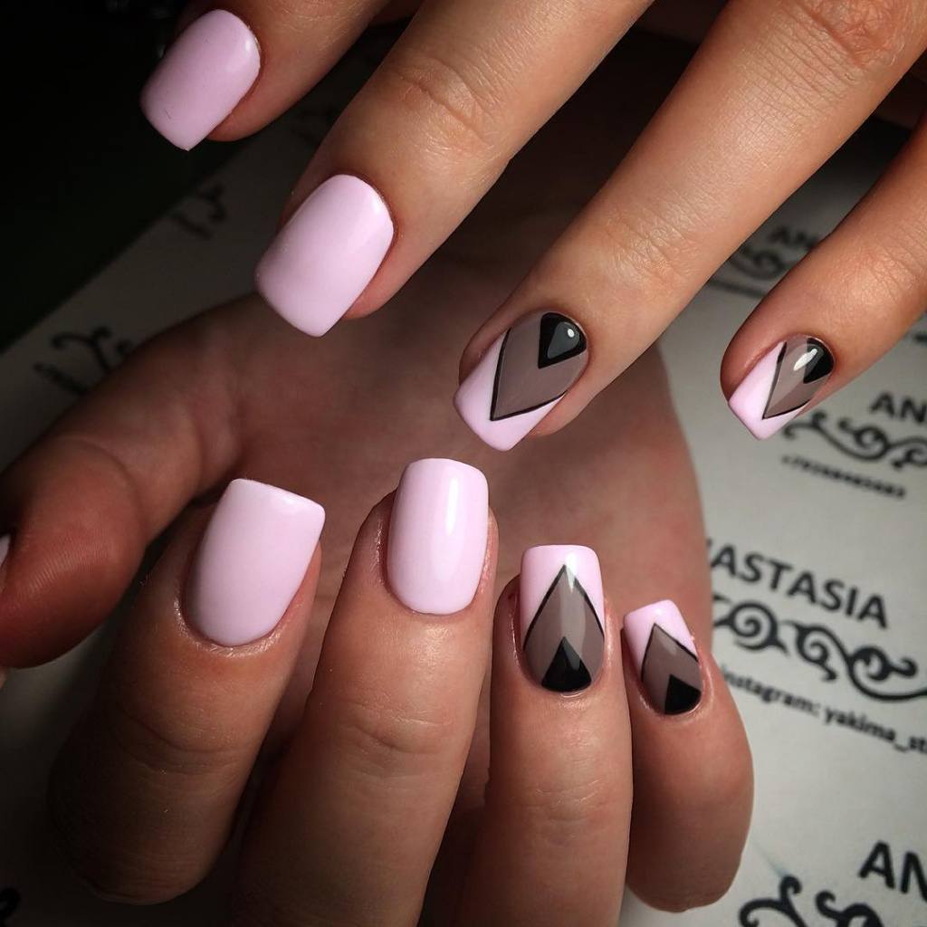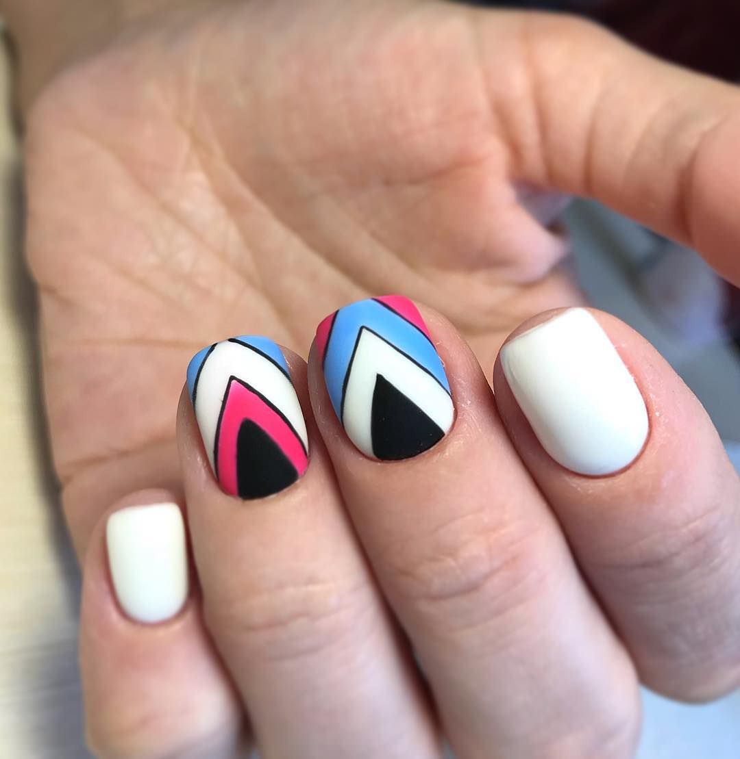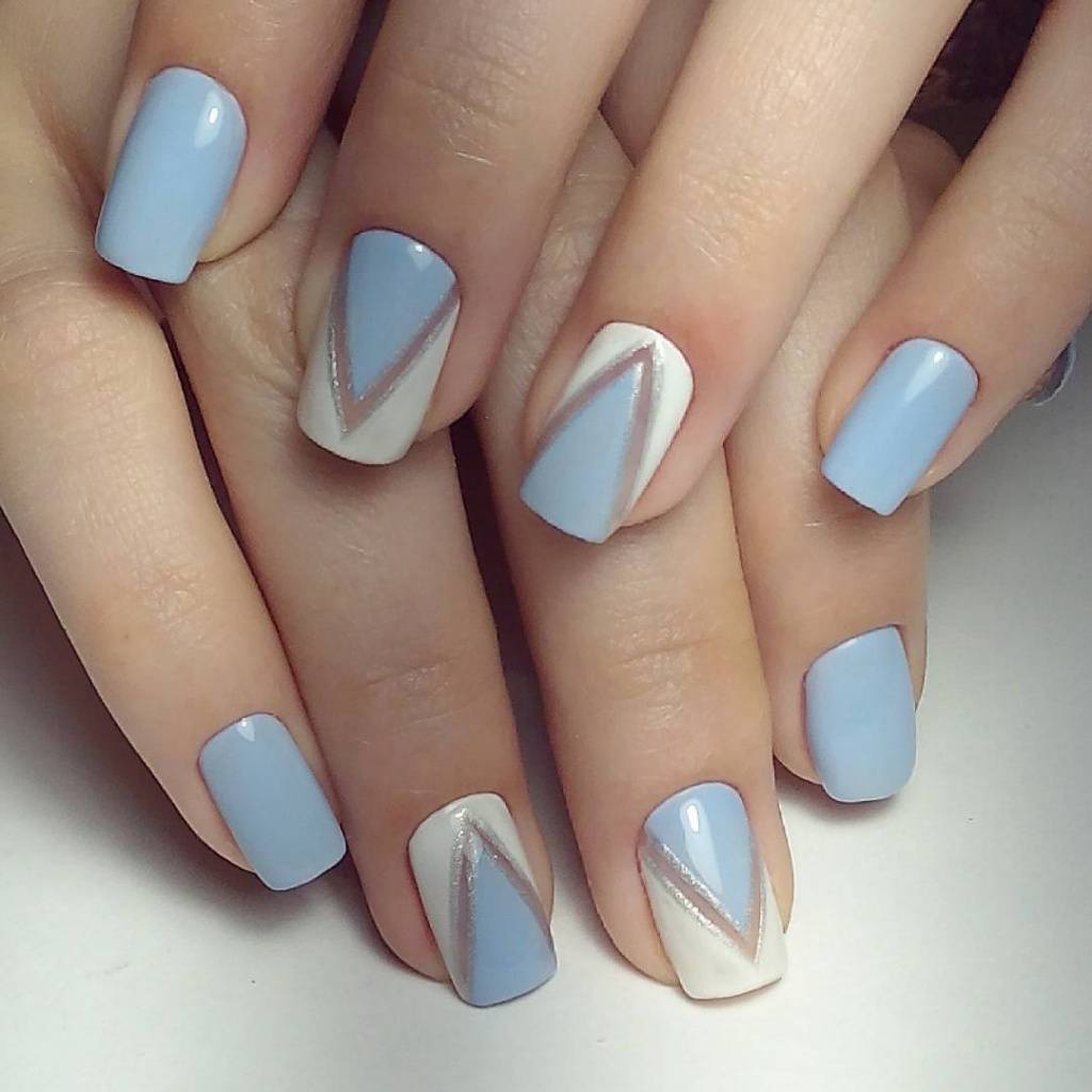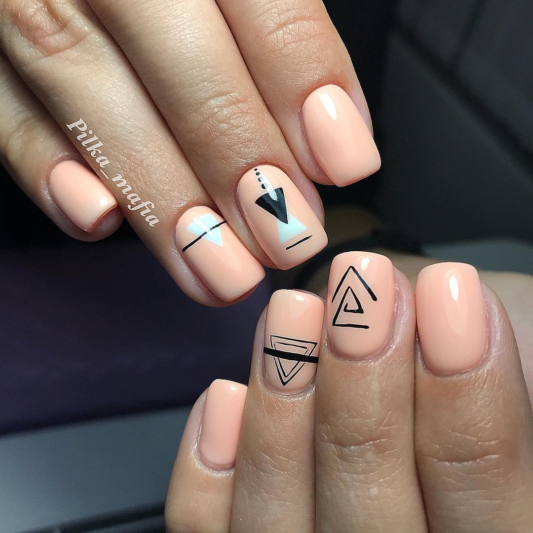 Часто треугольники являются только частью общего нейл-арта. Это в первую очередь, геометрический дизайн. Есть несколько вариантом оформления ногтей треугольниками:
