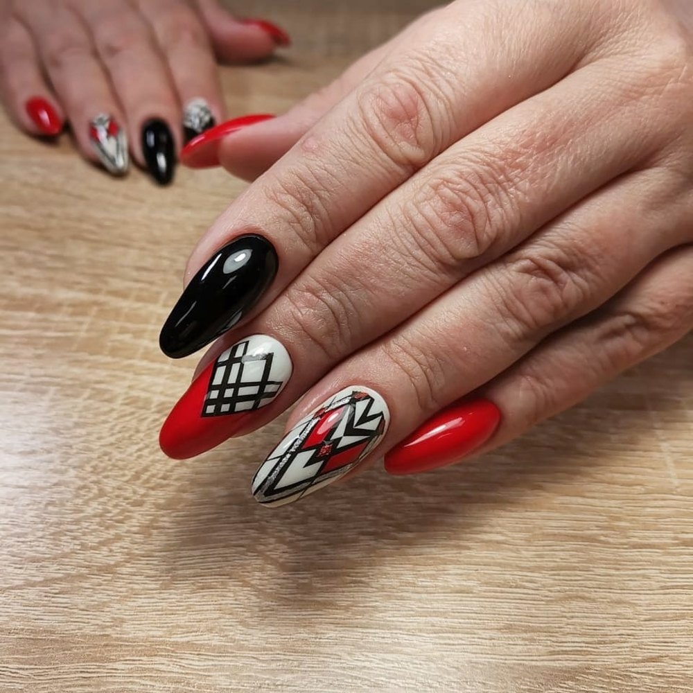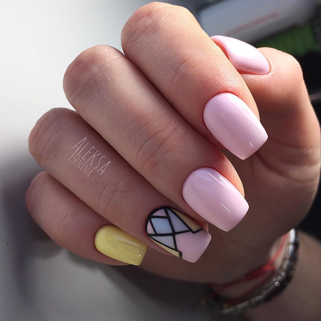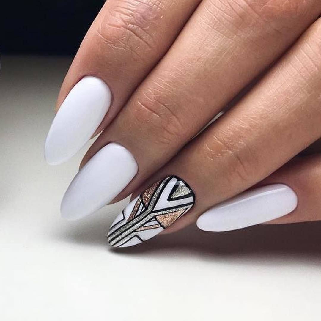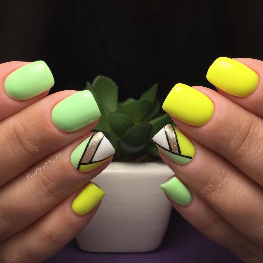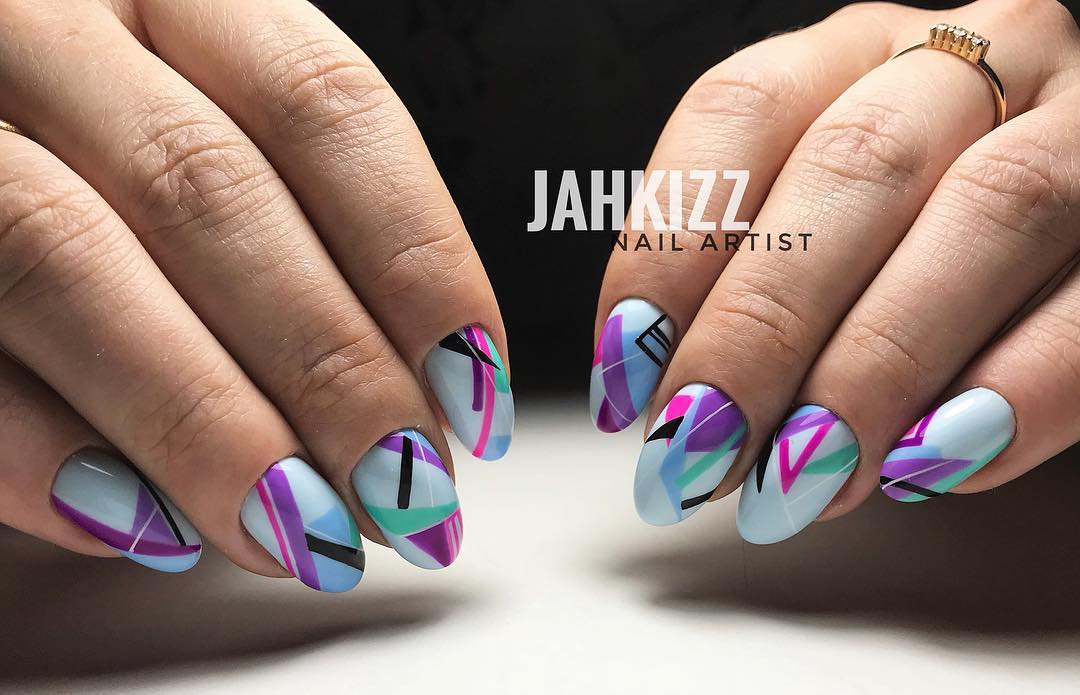 Часто треугольники являются только частью общего нейл-арта. Это в первую очередь, геометрический дизайн. Есть несколько вариантом оформления ногтей треугольниками:
