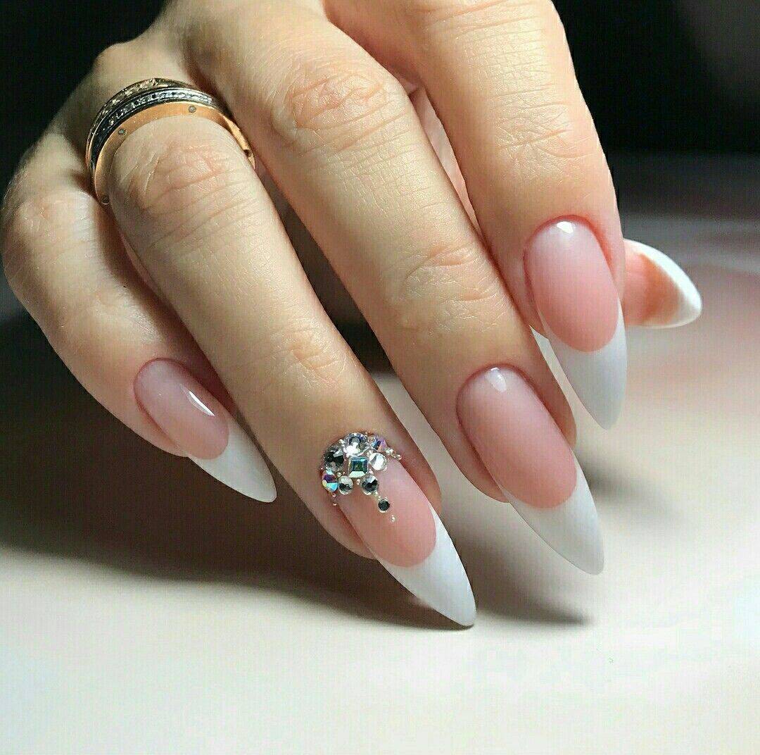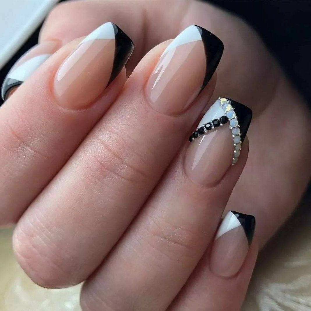 модные ногти френч со стразами 2018 год тенденции