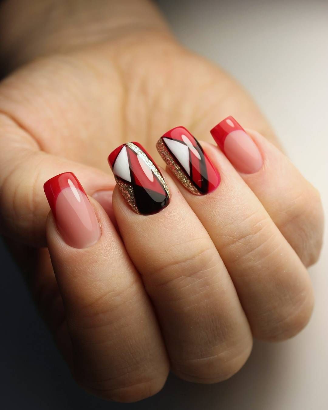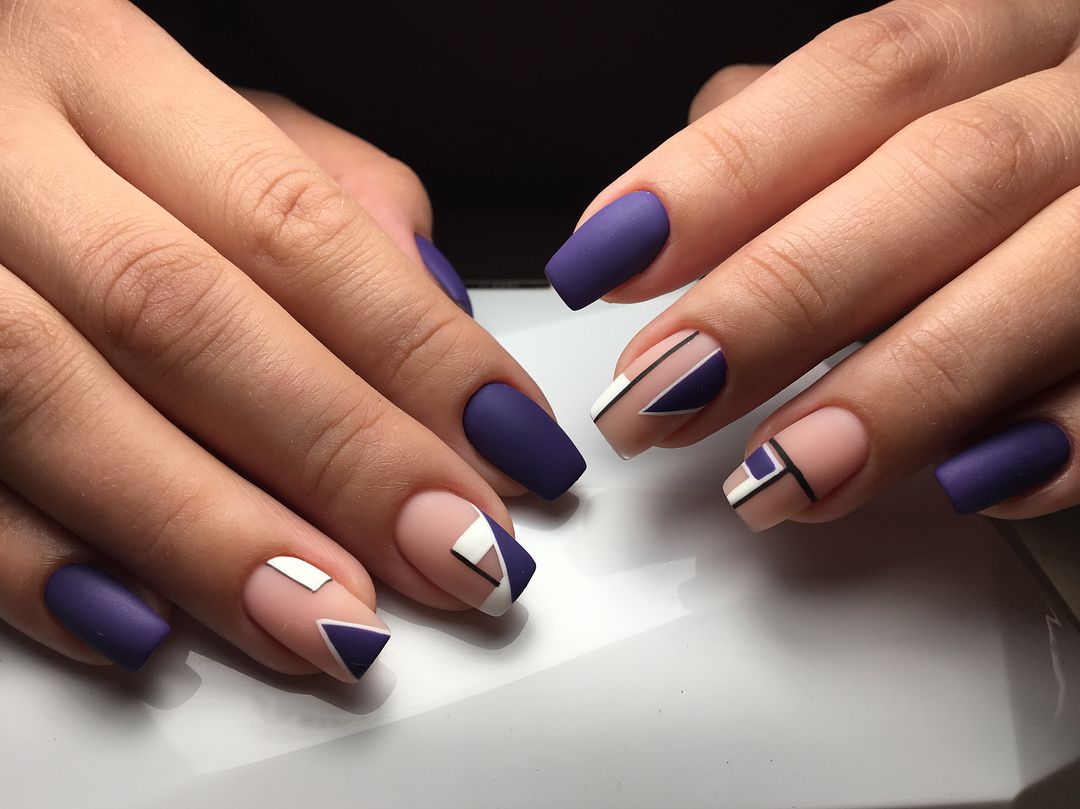 #5 Комбинированный маникюр с треугольниками