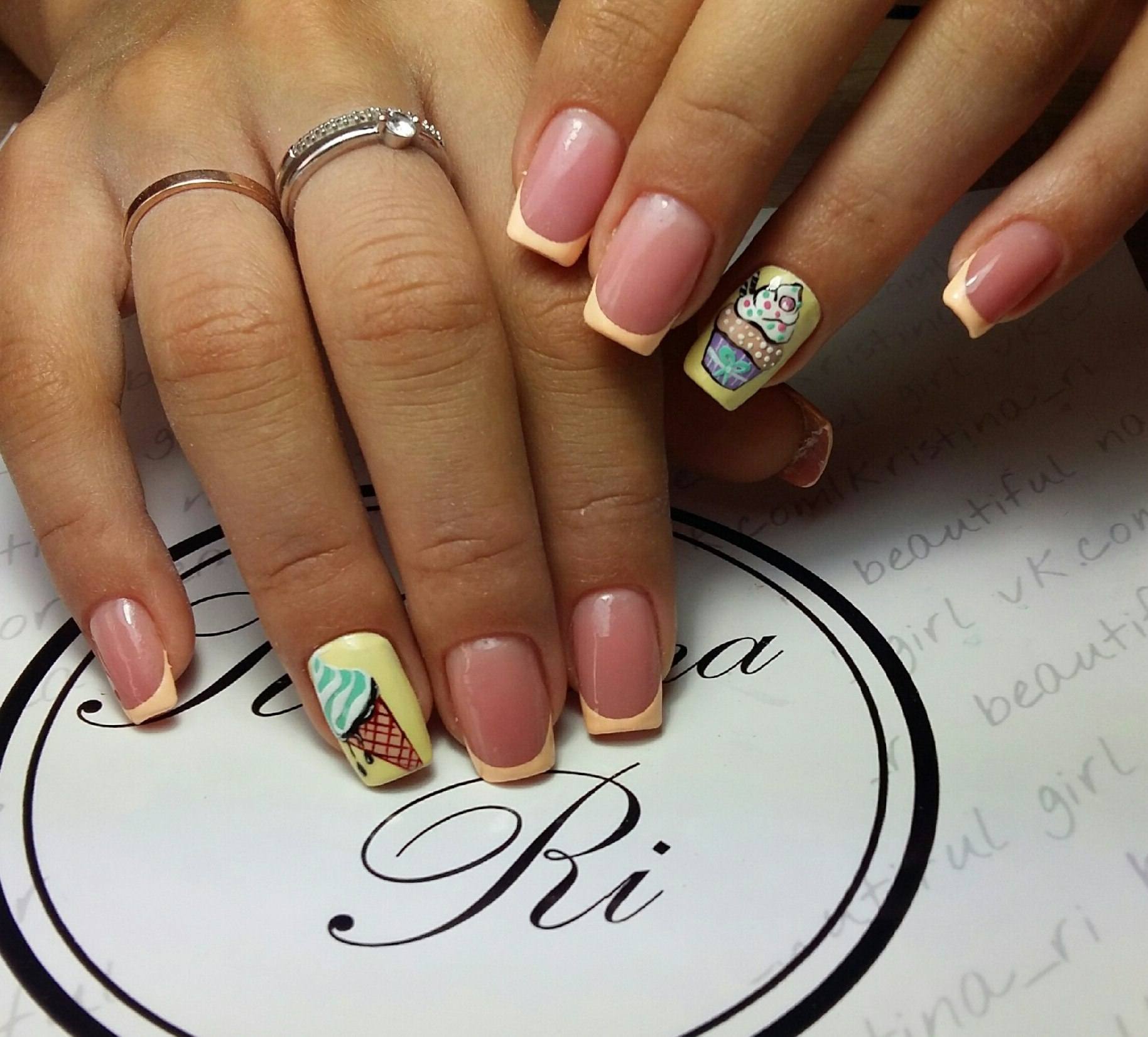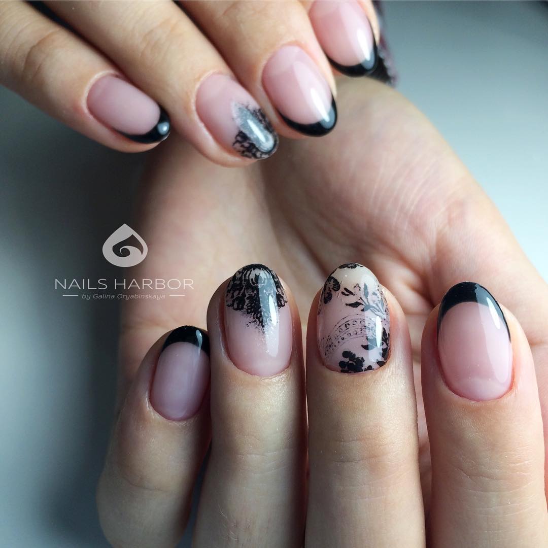 модный маникюр френч с принтом 2018 год