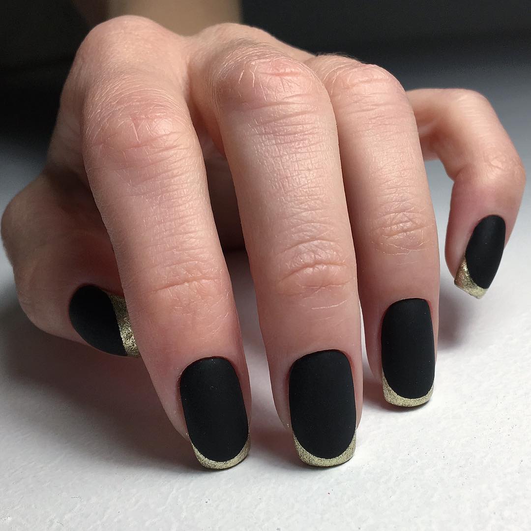 Один из популярных вариантов – перевернутый французский маникюр, когда «улыбку» рисуют в основании ногтевого ложа. Селебрити и бьюти-блогеры предпочитают именно такой экстраординарный дизайн, играя формами. Рисуют лунки, имитацию отросшего ногтя, полукруглую, треугольную, диагональную контрастную линию.
