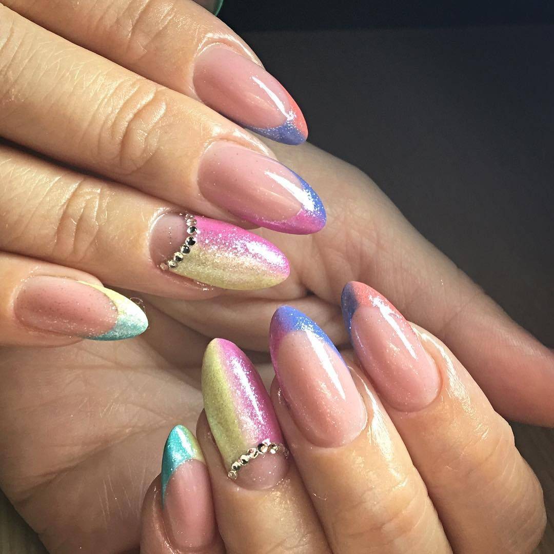 Френч на миндальные ногти с эффектом градиента