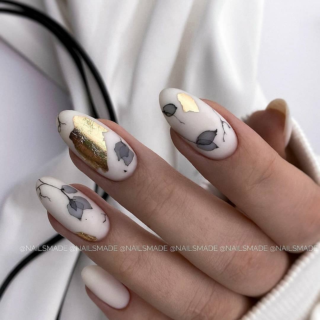 Его выбирают женщины каждый сезон, весна 2024 года не является исключением. Некоторые считают его скучным и слишком простым. Но если вы добавите золотые фрагменты, немного фольги, рисунки и прочие элементы декора, он заиграет совсем иначе. В этом сезоне нейл-мастера рекомендуют сделать белые матовые ногти с изображением лиц в черном цвете.