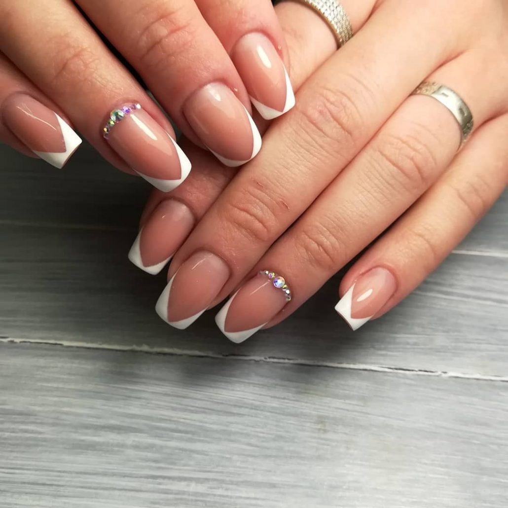 В тренде также маникюр с такими цветовыми решениями, как зеленый, белый, молочный, розовый, лиловый. И все это можно красиво инкрустировать красивыми камнями.