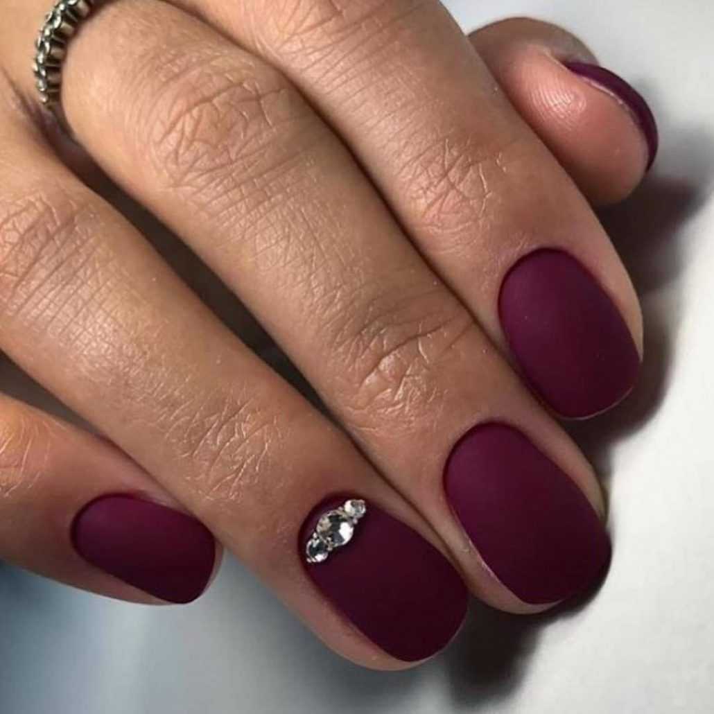 Короткая длина ногтевой пластины — это практично, удобно, а в новом сезоне еще и модно. Для винного маникюра на коротких ногтях выбирайте более темные и насыщенные оттенки лака, в качестве декора — наклейки, стразы, матовое или глянцевое покрытие. Для такой длины мастера нейл-арта рекомендуют придерживаться «овальной» формы.