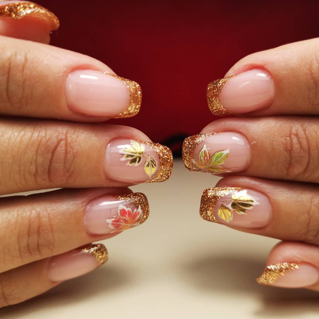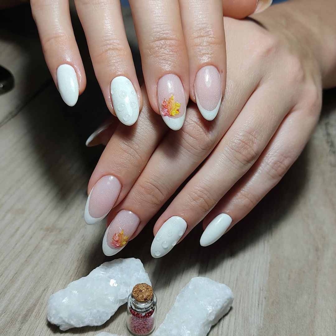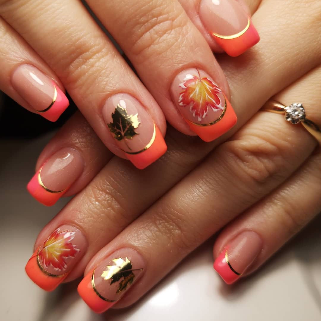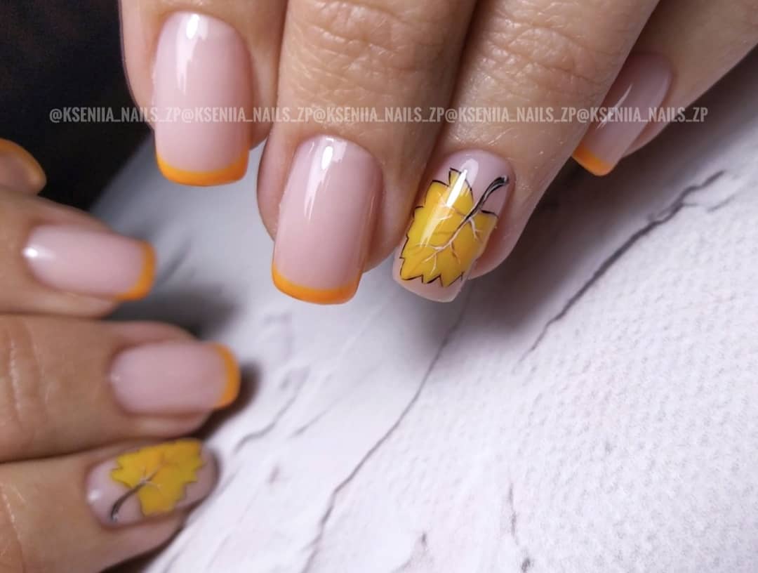 Французский маникюр с осенними листьями 2024