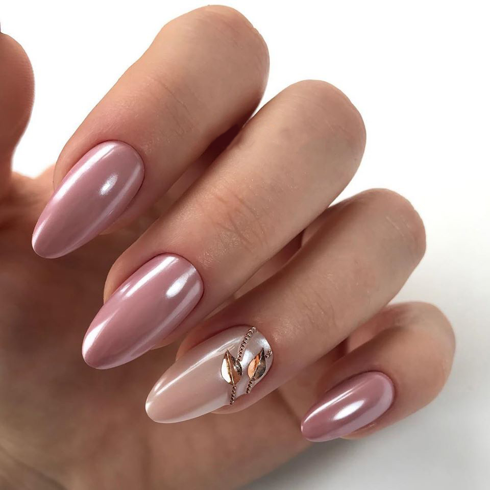 Выделите один или несколько ногтей более ярким и насыщенным перламутровым оттенком, чтобы создать акцент и привлечь внимание;