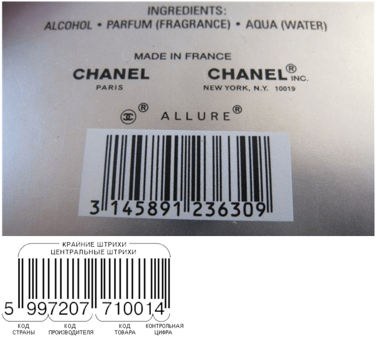 Указанный на упаковке штрих-код должен совпадать со штрих-кодом страны производителя. И если с одеждой закономерно, что крупные бренды держат производство в Бангладеше и Китае, то с парфюмом все наоборот: французские ароматы разливаются только во Франции.