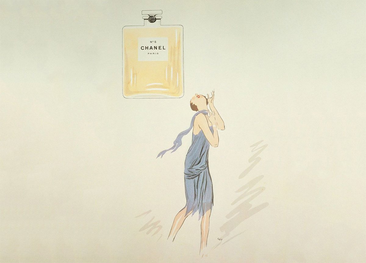 Один из первых рекламных плакатов Сhanel № 5. Художник: SEM (1921)